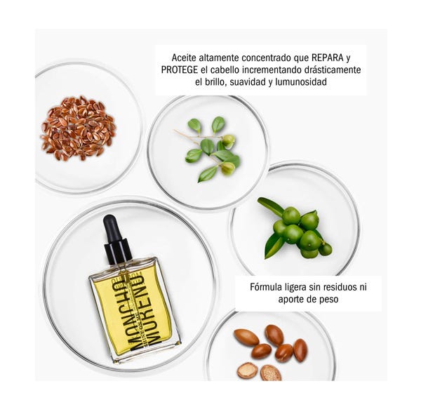 Sérum sellador de cutículas que aporta brillo y sedosidad. Elixir de aceites naturales que hidrata el cabello sin ensuciarlo y elimina el frizz. Ideal para todo tipo de cabellos.