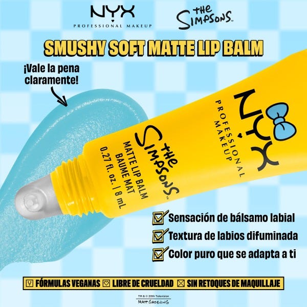 Descubre el Simpson Smushy Bálsamo Labial de NYX Professional Makeup, edición limitada inspirada en Springfield.