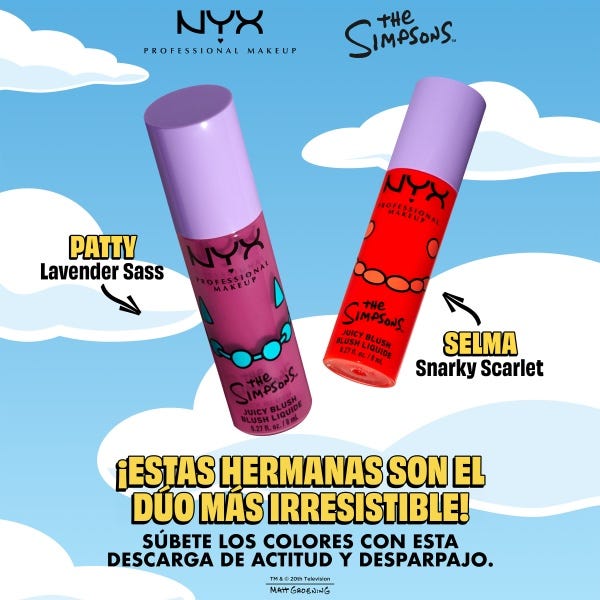 Su formulación vegana y libre de crueldad asegura un maquillaje consciente, mientras su inspiración en Patty y Selma añade un toque divertido y único. Una experiencia que combina color, actitud y cultura pop.