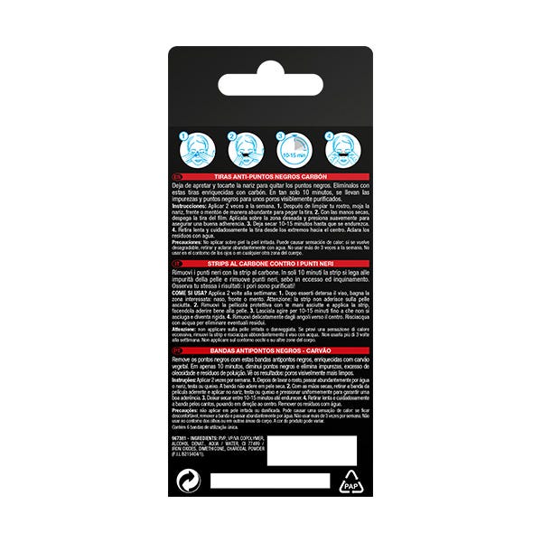 Las tiras Pure Active carbón enriquecidas con carbón vegetal, se llevan las impurezas y los puntos negros para unos poros visiblemente purificados.