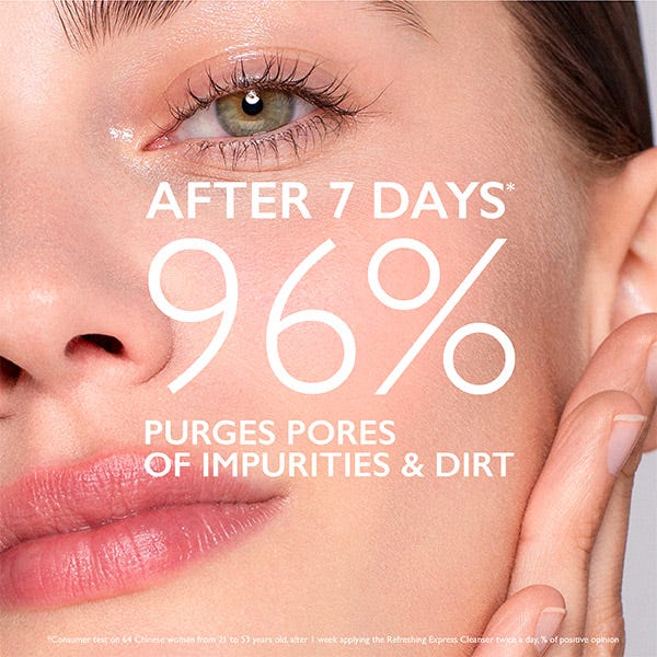 3 limpiadoras exprés en uno que limpia y tonifica la piel y los ojos en un único paso.