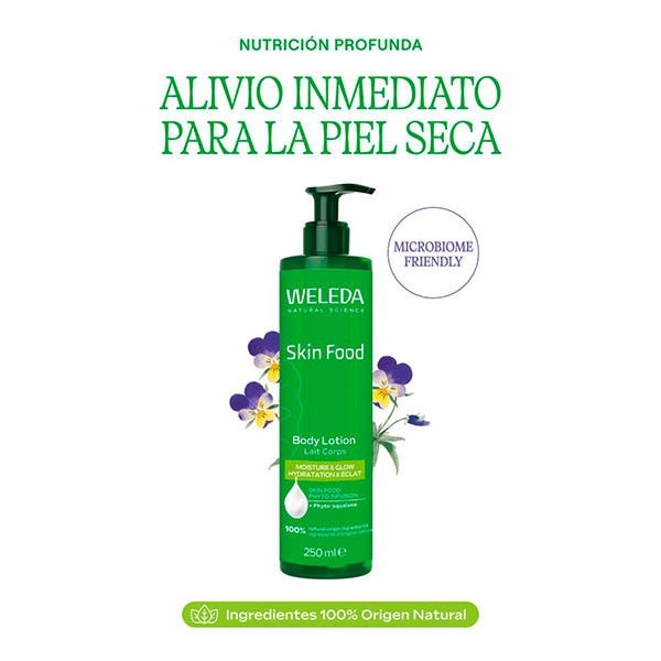 Leche corporal nutritiva con textura ligera y rápida absorción, ideal para el cuidado diario de la piel seca, muy seca, agrietada o irritada.