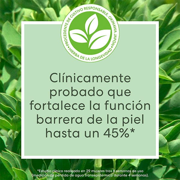 El secreto de este sérum es la Hierba de la Longevidad - ahora potenciada con trehalosa para una mayor eficacia - combinada con niacinamida y amapola californiana, potentes extractos botánicos. Con más vitaminas y minerales que la espinaca o el kale, la Hierba de la Longevidad lleva siglos formando parte de la dieta local de los habitantes de Okinawa en Japón, donde los habitantes viven más que en cualquier otro lugar. Este superalimento rico en minerales se cosecha de forma responsable sin usar productos químicos, pesticidas o fertilizantes.