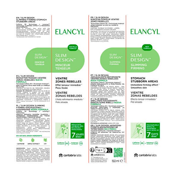 Aplicar en la zona deseada (estómago, caderas, brazos) con el método de masaje del laboratorio ELANCYL desarrollado por un fisioterapeuta.