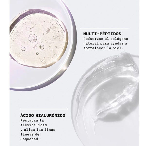 - Multi-péptidos: Refuerzan el colágeno natural para ayudar a fortalecer la piel para conseguir un efecto lifting y corregir visiblemente las líneas y arrugas.