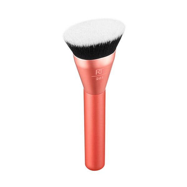 La brocha de maquillaje Real Techniques Snatch + Sculpt Contour presenta una cabeza ovalada que abraza los contornos faciales para una definición natural. su diseño curvado facilita la definición y realce de los contornos sin esfuerzo. Funciona con contornos y bronceadores líquidos, en crema y en polvo, ofreciendo una cobertura edificable para un acabado elevado.