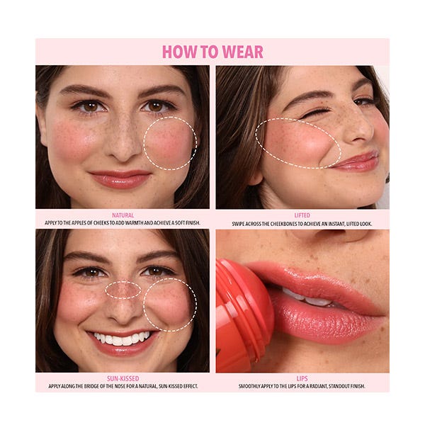 Puede usarse solo o sobre el maquillaje. Aplícalo en las manzanas de las mejillas y en los labios para un rubor natural. Difumina suavemente con un dedo limpio. Construye el nivel de intensidad de color que desees.