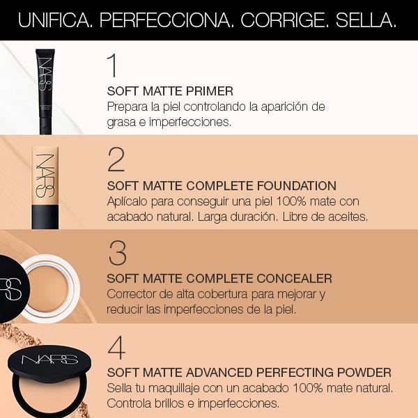 Para un acabado mate y suave de aspecto natural, utilizar la brocha #15 Precision Powder Brush para extender los polvos por todo el rostro. Úsalo solo o sobre la base para fijar el maquillaje durante 24 horas.
