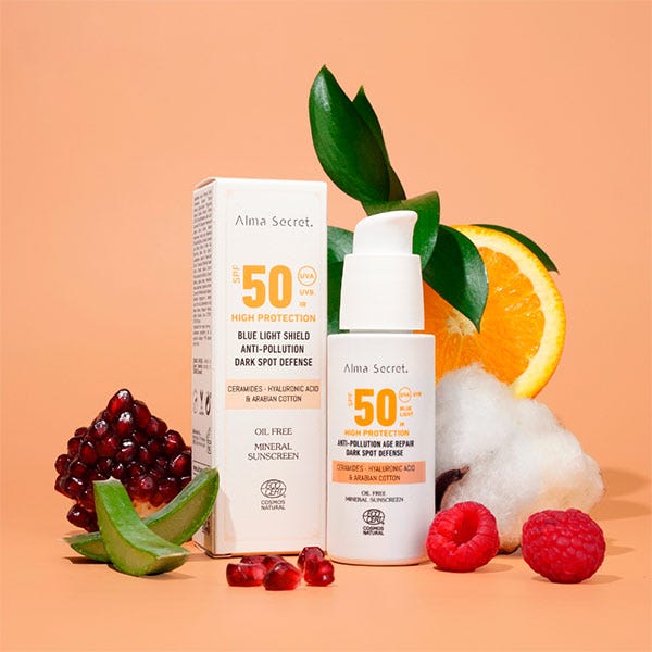 Una fórmula avanzada, con SPF 50 y filtros minerales de origen natural (Dióxido de Titanio y Óxido de Zinc), que protege la piel de los rayos UVA, UVB, Infrarrojos y Luz Azul (HEVis).