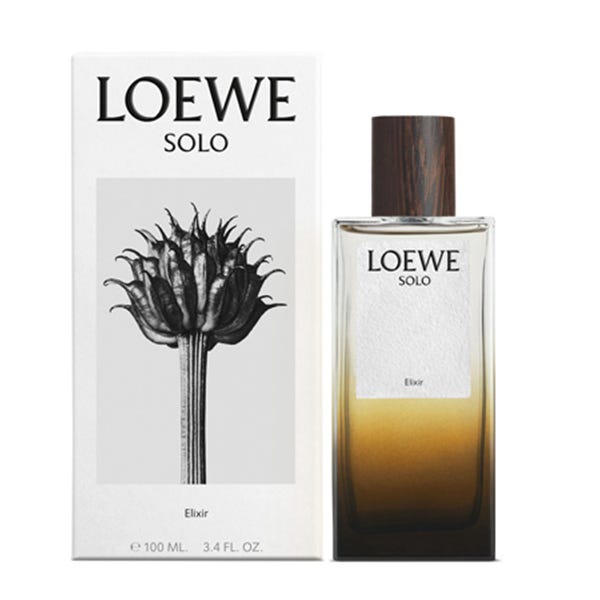 LOEWE Solo Elixir pertenece a la familia olfativa aromática floral ambarada, revelando notas de lavanda, jazmín, mandarina y orris, combinadas con nuez moscada, canela, olíbano y pachulí. Incorpora además el exclusivo Acorde LOEWE: una nota rica y auténtica inspirada en la fragancia resinosa de la jara silvestre española.