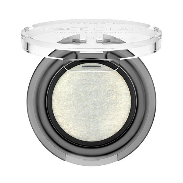 ¡Con la sombra de ojos Space Glam Chrome de Catrice creas maquillajes del espacio exterior! La sombra de ojos mono tiene una gran pigmentación y, dependiendo del ángulo de la luz, muestra sus tonalidades blancas con un sutil shimmer verde y dorado.