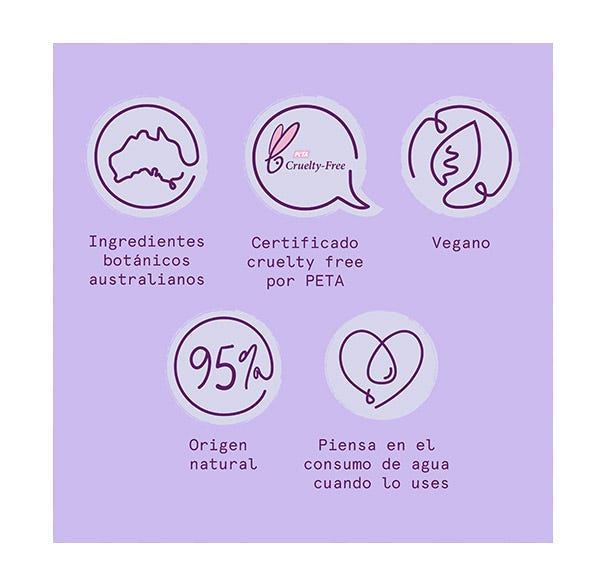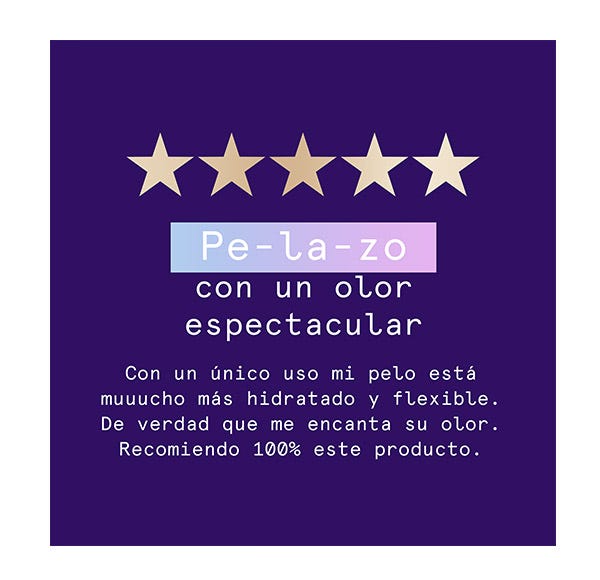Mascarilla capilar con un 95 % de ingredientes naturales (mezcla de un 87 % de agua purificada de origen natural y un 8 % de ingredientes derivados naturales, el 5 % restante se dedica a una buena experiencia de uso y producto).