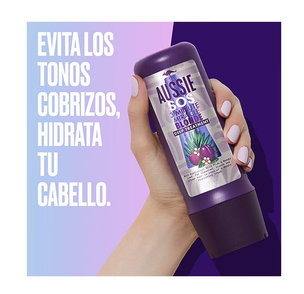 Instrucciones de uso: aplica una buena cantidad de este tratamiento intensivo sobre el cabello mojado, déjalo actuar durante 3 milagrosos minutos y acláralo. Y... ¡tachán! Para rematar la faena, úsalo con el fantástico Champú y Acondicionador morado hidratante Aussie SOS Blonde.