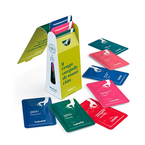 Este pack incluye la gama completa de Lubets de lubricantes, potenciadores del orgasmo y aceites de masaje. En total, 7 unidades monodosis para que lo experimentes absolutamente todo.