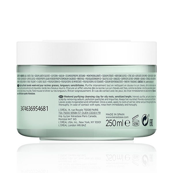 Arcilla purificante, para utilizar una vez por semana, que limpia intensamente y purifica el cuero cabelludo, elimina el exceso de sebo de la raíz, dejándola con una sensación de limpieza y ligereza. Enriquecida con Aminoácidos, Arcilla de Caolín y Mentol, limpia intensamente y evita que el cabello se engrase a la vez que aporta volumen a la raíz y deja el cuero cabelludo con sensación de frescor. Su aroma, inspirado en el frescor del cuidado facial, tiene una fragancia celestial con toques de té Earl Grey, suavizados con esencia de rosa y madera de cedro. Ayuda a equilibrar el nivel de grasa en el cuero cabelludo, elimina las impurezas y la contaminación sin provocar descamación, dejando el cuero cabelludo vigorizado y con sensación de frescor. Esta arcilla está especialmente indicada para cabello con raíz grasa y largos sensibilizados.