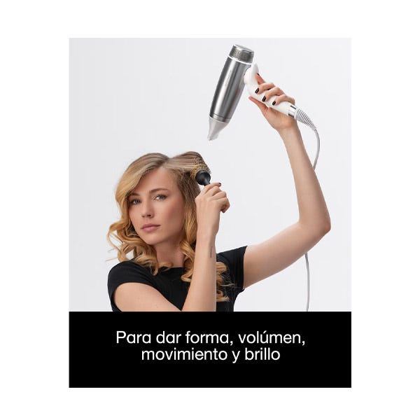 La salida de aire de 65mm está diseñada para un peinado concentrado con x2,2 veces más volumen en las raíces¹. Su forma contorneada crea un flujo de aire suave y potente para un control máximo del secado.