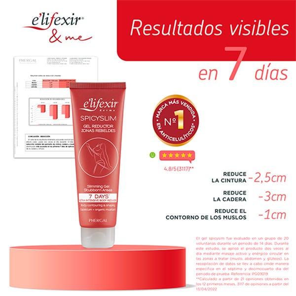 Elifexir Dermo Spicyslim gel quemagrasa de zonas rebeldes.