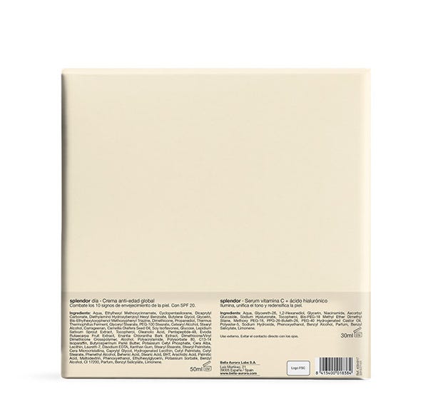 En este estuche encontrarás la crema de día splendor y el serum iluminador antioxidante de regalo.