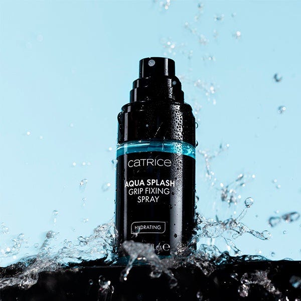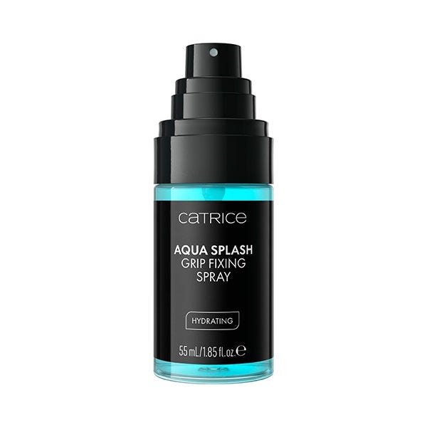 Fija tu look con el spray fijador Catrice Aqua Splash Grip en un vibrante tono azul.