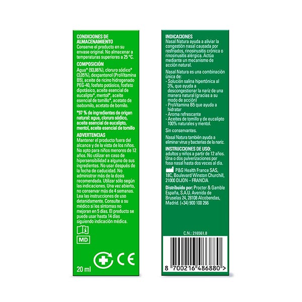 Nasal Natura Spray Nasal Descongestivo es una solución hipertónica que ayuda a aliviar la congestión nasal causada por resfriados, rinosinusitis crónica o alérgica.
