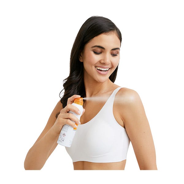 Este spray transparente y no graso se absorbe rápidamente, refresca la piel y es resistente al agua.