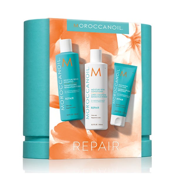 Este kit de cuidado capilar de edición limitada incluye los tres productos superventas de la colección Reparación, además de una muestra GRATUITA de la loción corporal y gel de ducha..