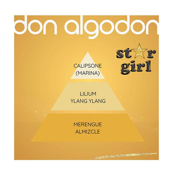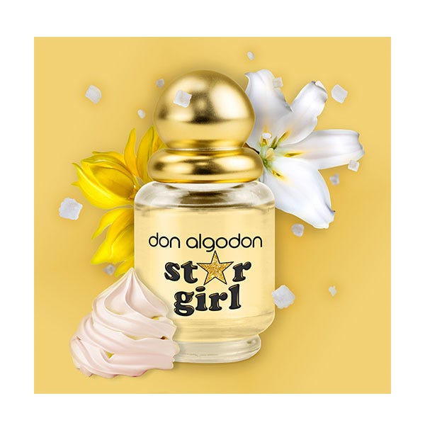 Brilla como una estrella con la Eau de Toilette Star Girl de Don Algodón. Una fragancia floral gourmand marina de 30 ml que te hará sentir única y deslumbrante en cada ocasión. Con notas de calipsone, lilium, ylang ylang, merengue y almizcle, es el perfume perfecto para mujeres radiantes que destacan por su fuerza interior.