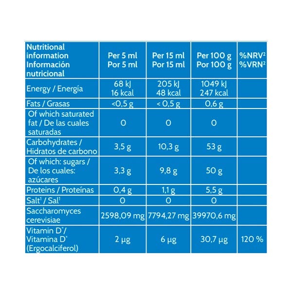 Contiene ingredientes naturales, a base de levadura con vitamina D