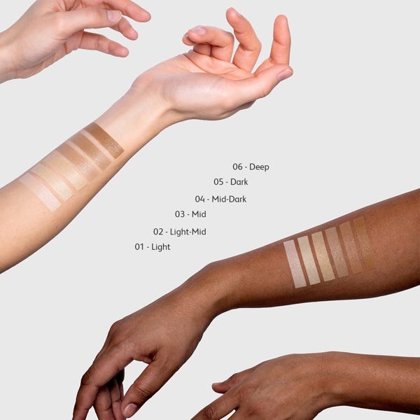 Presentado en 6 versátiles tonalidades, su adaptabilidad y capacidad de superposición lo hacen adecuado para una amplia variedad de tonos de piel.