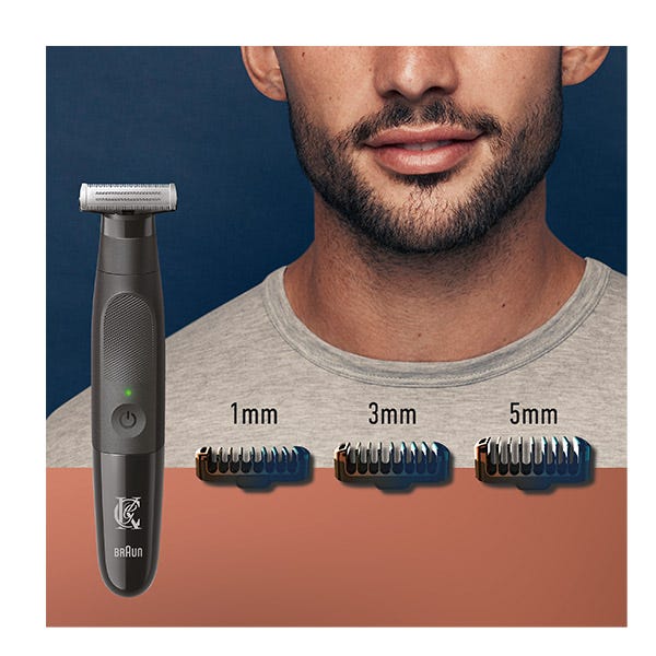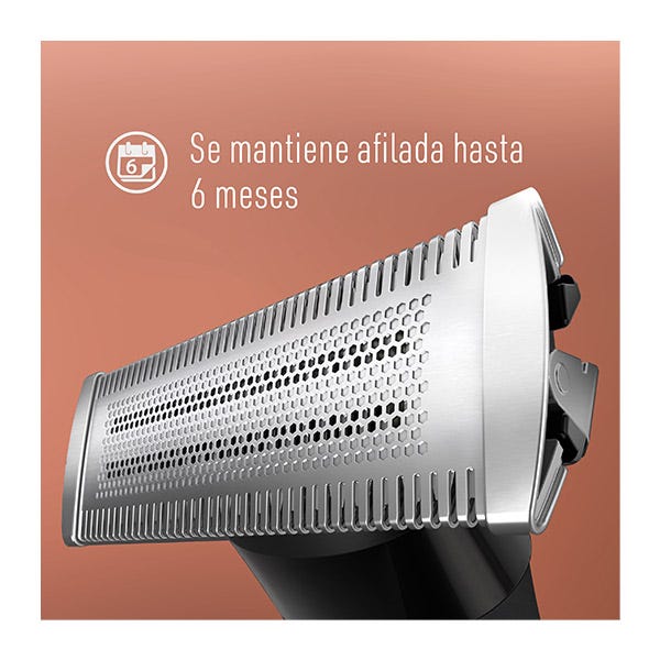 Los 3 accesorios de peine intercambiables (1 mm, 3 mm o 5 mm) de Style Master permiten recortar en dirección ascendente o descendente. Cuenta con una hoja completamente de metal reemplazable que dura hasta 6 meses de afeitados, un cabezal pivotante que se adapta a las zonas de difícil acceso y un fino mango antideslizante de 360˚ para máxima precisión. Además, es totalmente resistente al agua y su batería dura 45 minutos para un uso cómodo en la ducha.