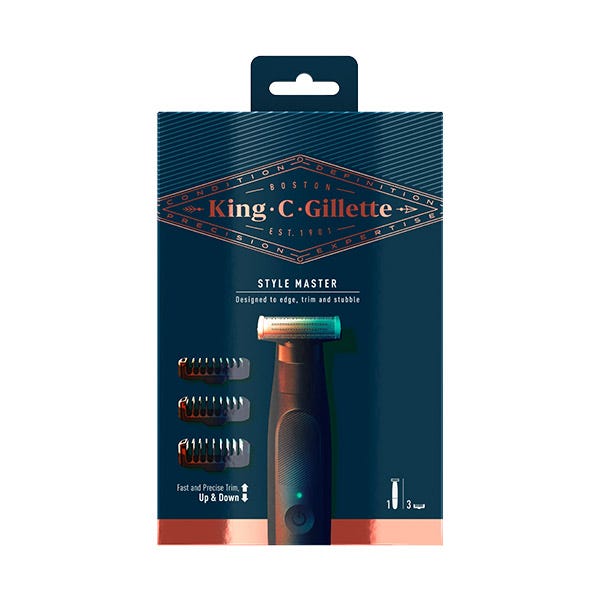 La King C. Gillette Style Master es una herramienta versátil diseñada para perfilar, recortar y lograr una barba de tres días. Esta recortadora sin cable tiene una hoja 4D para pasadas fáciles, rápidas y cómodas durante el afeitado.