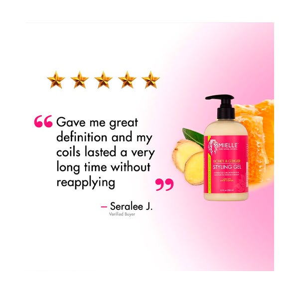 Consiga los estilos que ama mientras fomenta un cabello más sano y fuerte con el gel de peinado natural de miel y jengibre de Mielle. Nuestra fórmula está hecha con más del 70 por ciento de ingredientes orgánicos certificados, que incluyen miel, jengibre, extracto de aloe y aceite de babasú. Estos ingredientes naturales nutren tu cabello mientras brindan una fijación manejable. Obtenga definición de rizos, bordes suaves y reducción del frizz para su rutina diaria sin preocuparse por la acumulación de productos o los químicos dañinos. ¡Ordene su botella de Gel para Peinar con Miel y Jengibre hoy!