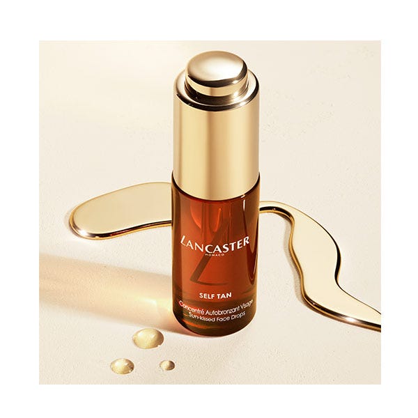 Lancaster Self Tan Sun-kissed Face Drops proporciona un bronceado uniforme y natural en tan solo 1 hora que dura hasta 1 semana*.