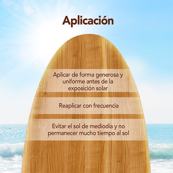 Aplicar de forma generosa y uniforme antes de la exposición solar.