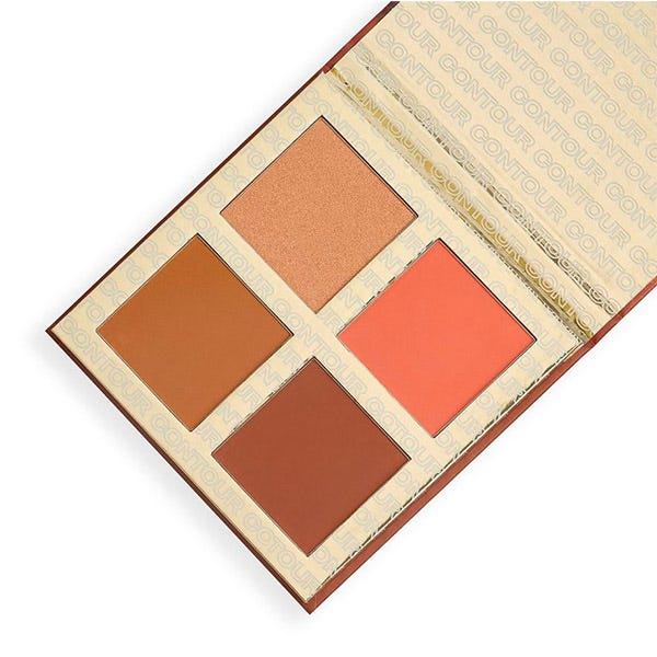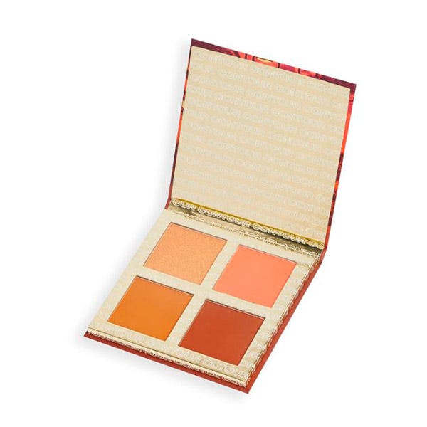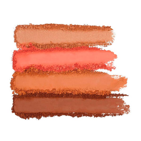 Estas paletas de 4 paneles aportan calor con tonos bronceadores, contornos, iluminadores y coloretes veganos que resaltan la tez.