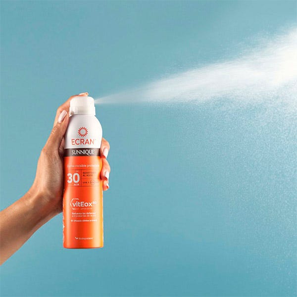 Proporciona una protección invisible e inmediata contra las quemaduras solares, incluso sobre piel mojada.