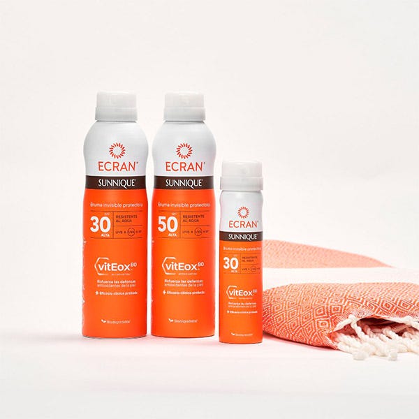 Nuestra Bruma Invisible proporciona una protección invisible e inmediata contra las quemaduras solares, incluso sobre piel mojada.