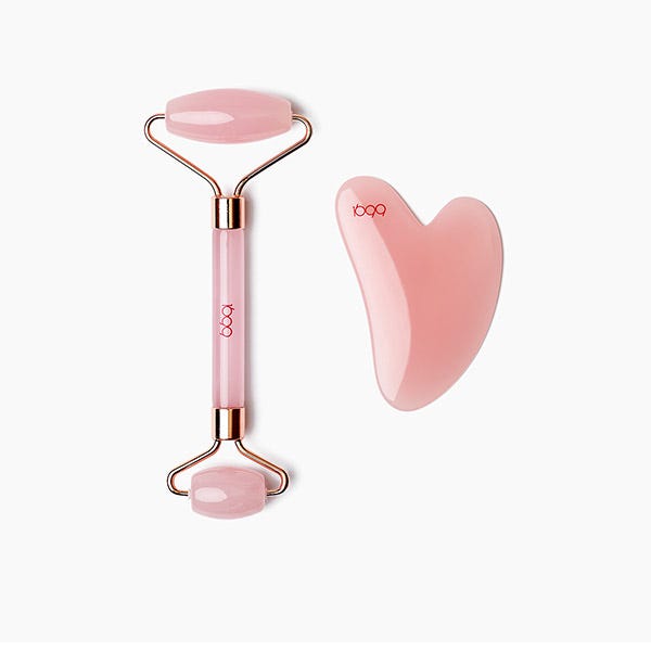 Combina rodillo facial y piedra guasha para cuidar la piel. Tonifica, previene la flacidez y mejora la circulación mientras masajeas tu rostro con sérum o aceites.