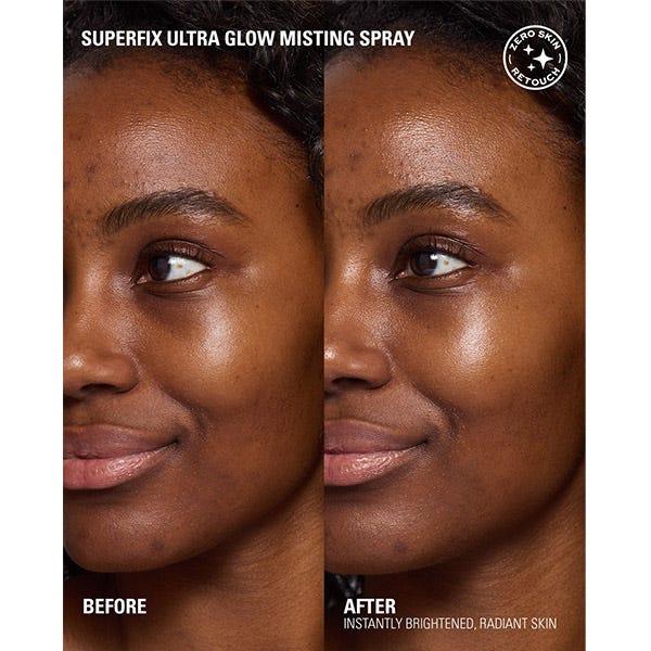 Spray fijador Superfix Ultra Glow que fija el maquillaje mientras aporta un acabado luminoso y radiante. Fórmula ligera que se difunde uniformemente sobre el rostro sellando el look y añadiendo un brillo sutil. Con partículas iluminadoras que aportan luminosidad natural. Prolonga la duración del maquillaje manteniéndolo fresco durante todo el día.
