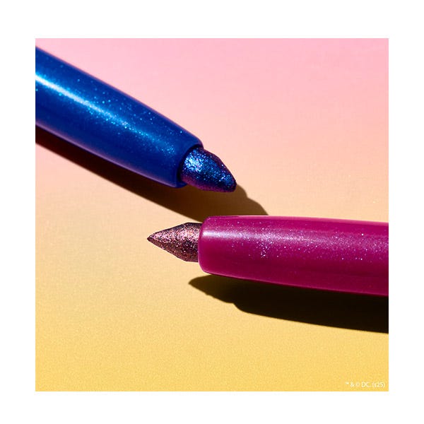 Haz una declaración audaz con el lápiz para ojos Superman cremoso y duocromo 01 I’m falling for you en azul marino y 02 You got this in a hot pink! Estos delineadores de ojos de pigmento alto son impermeables y presentan un cautivador efecto duocromo que se desplaza sutilmente con la luz, añadiendo profundidad y dimensión a tu look. Con una textura extra cremosa para una aplicación suave y sin esfuerzo, son perfectos para crear líneas precisas o un efecto suave y difuminado. Úselos solos para realzar por completo el dinámico efecto duocromo, ideal para un toque de dramatismo inspirado en los superhéroes.