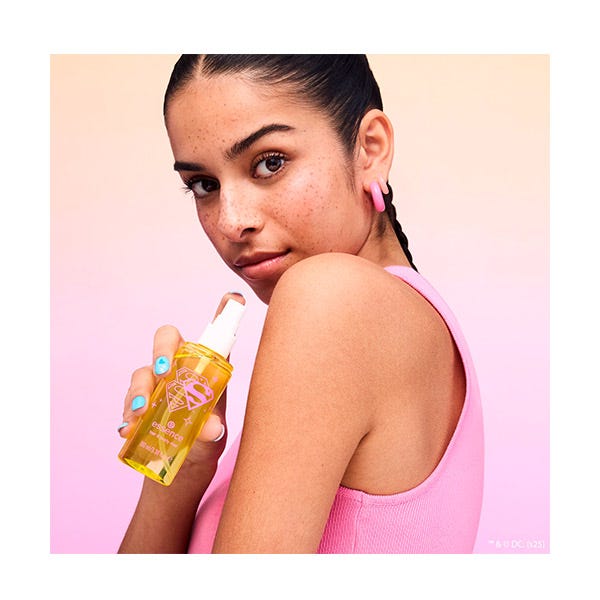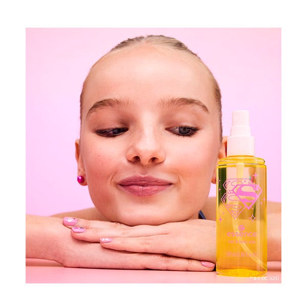¡Refresca y revitaliza mientras te desplazas con el spray refrescante para cabello y cuerpo Superman! de Essence Esta bruma compacta aporta un impulso instantáneo a tu cabello y cuerpo, dejando un aroma ligero, fresco y tropical basado en notas de piña y coco que duran. Perfecto para retoques durante todo el día, es tu mejor compañero de superhéroe para refrescarte rápidamente estés donde estés. Solo tienes que rociar sobre el cuerpo y el cabello, evitando la cara, y sentirte lista para conquistar el día.