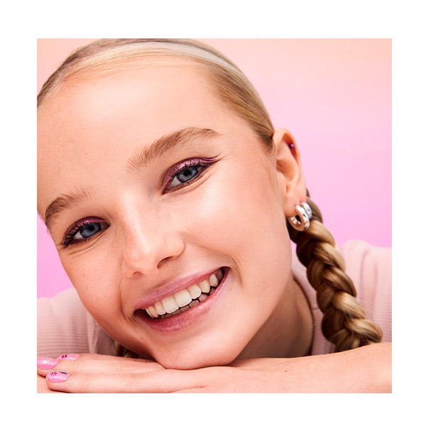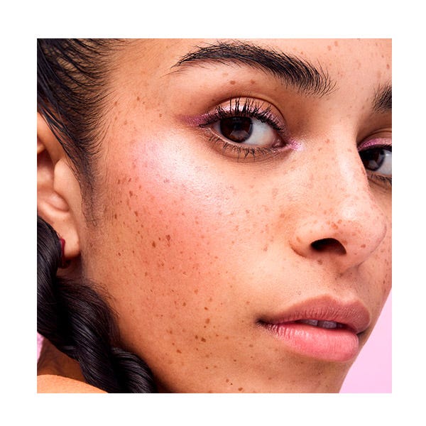El iluminador se puede utilizar para destacar los rasgos del rostro: ¡simplemente aplica un poco de iluminador en la frente, el puente de la nariz, encima de los pómulos y/o en el arco de Cupido con un pincel iluminador para potenciar tus rasgos faciales favoritos!
