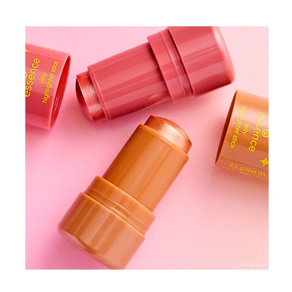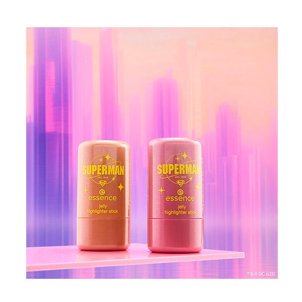 Saca a relucir tu brillo interior con el iluminador de jalea Superman en barra 01 Undefeated en una suave rosa y 02 Mighty en un suave tono champán. Estos iluminadores presentan una textura única de gelatina con un efecto refrescante que refresca la piel. Su fórmula ligera y acuosa se desliza suavemente, proporcionando un brillo sobrenatural y húmedo con un brillo suave. El agradable aroma añade un toque extra de placer a tu rutina de belleza. Tanto si buscas un brillo sutil como un toque atrevido, estos palos son tu opción preferida para un brillo perfecto y energizante.