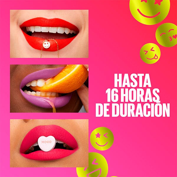 El Pintalabios mate de larga duración SuperStay Matte Ink Moodmakers de Maybelline New York tiene una fórmula efecto tinta líquida con pigmentos de color ultrasaturado que ni cuartea ni reseca los labios proporcionando un acabado mate aterciopelado. Su aplicador de alta precisión en forma de flecha permite un trazado preciso, además de condensar la cantidad justa de producto y conseguir una cobertura total en una sola pasada y sin retoques.