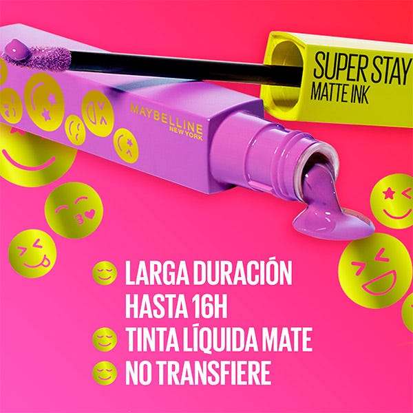 El Pintalabios mate de larga duración SuperStay Matte Ink es permanente, no transfiere y tiene una duración de hasta 16 horas, dándote la seguridad de que siempre estarás tan perfecta como cuando saliste de casa.