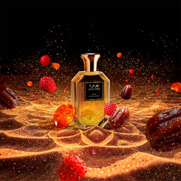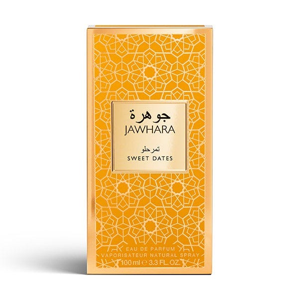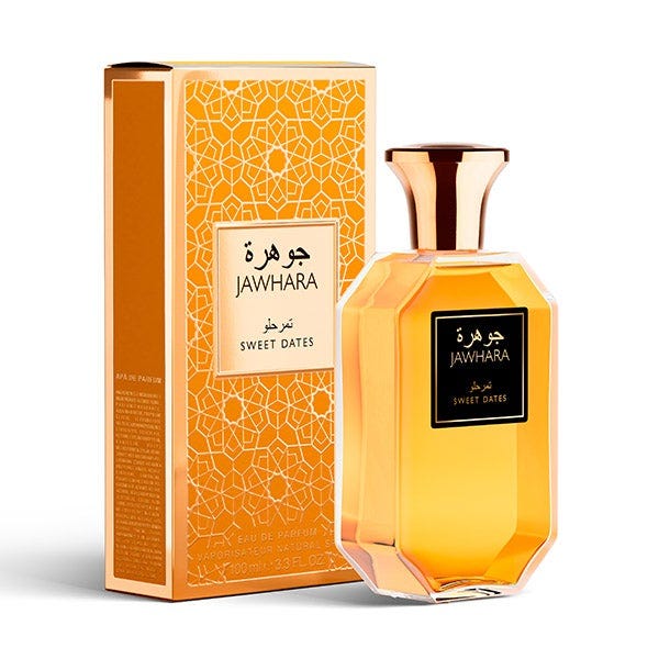 Deléitese con los hipnóticos y lujosos aromas de Oriente Medio con Sweet Dates, una fragancia ambarada, dulce y sensual de la Colección Jawhara, una selección de cinco fascinantes Eaux de Parfum que transportan a quien la usa a Oriente Medio, un lugar donde la rica tradición se encuentra con una magnífica modernidad. Presentada en elegantes frascos de vidrio inspirados en la ornamentada arquitectura árabe, cada adictiva composición aromática es una celebración única de las diferentes facetas de la belleza sensorial árabe y su herencia olfativa.