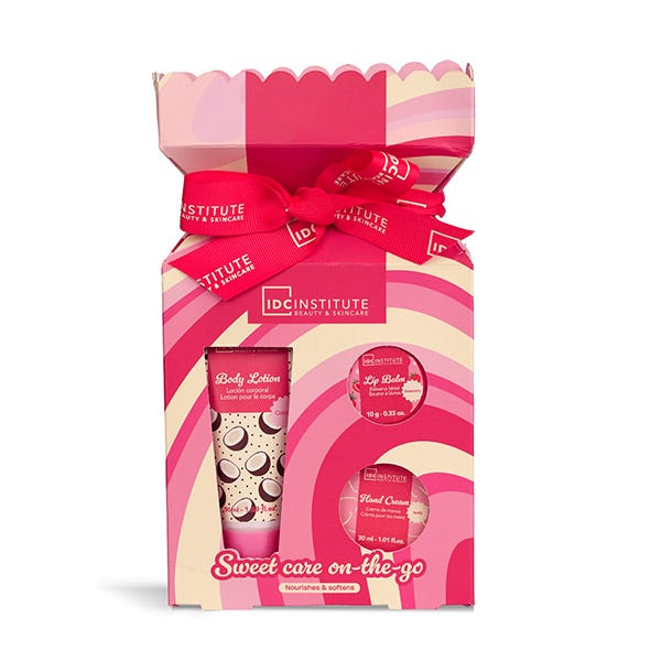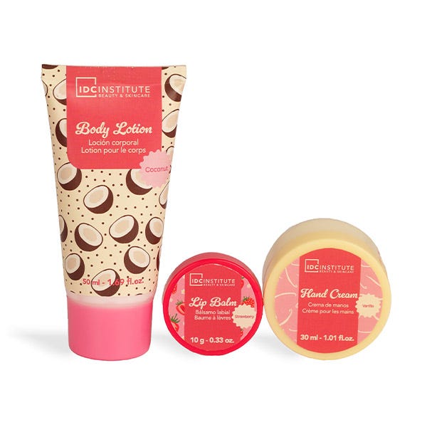 Un trío irresistible para cuidar tu piel y labios con texturas cremosas y aromas golosos. Incluye una loción corporal, una crema de manos en tarrito y un bálsamo labial, todo en formato mini para llevar contigo. Ideal para regalar o mimarte con un momento dulce estés donde estés.