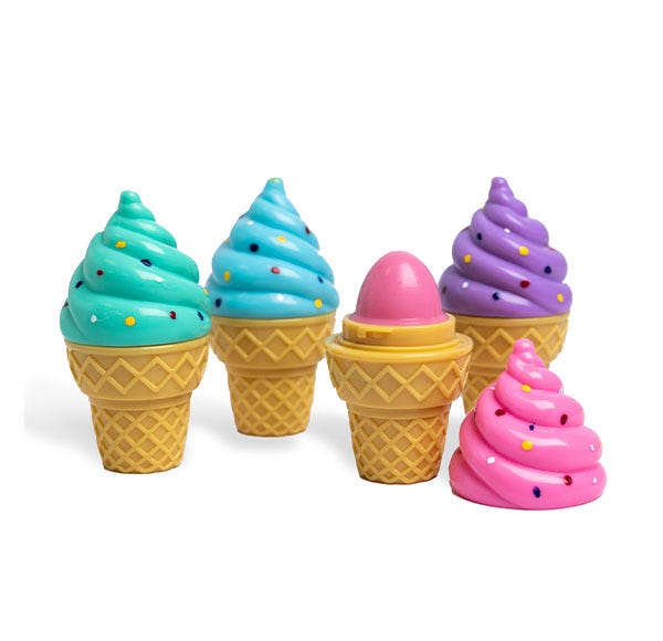 Divertidos bálsamos labiales de helado de direfentes aromas.