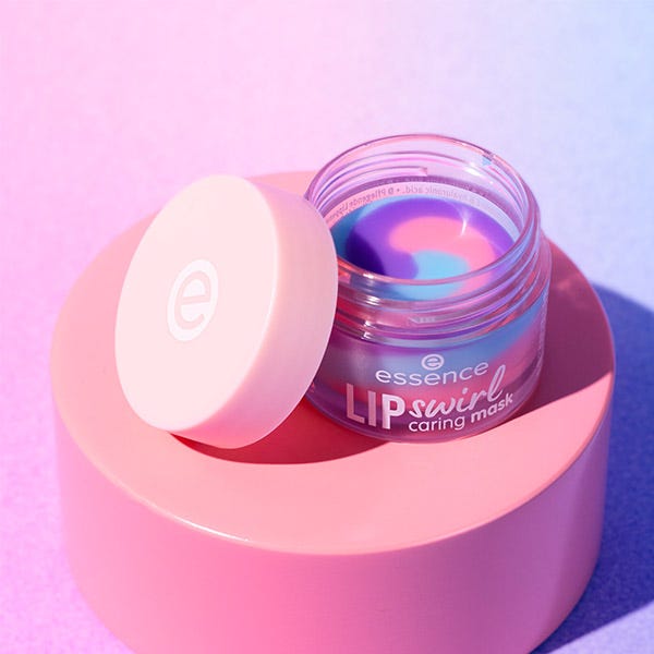 La mascarilla de cuidado labial Lip Swirl presenta una textura de tres colores que se vuelve transparente al instante una vez aplicada en los labios. Esta máscara de labios ofrece un cuidado potente, combinando un aroma delicado con un acabado brillante y húmedo. Enriquecido con aceite de ricino y aguacate, manteca de karité y mango, además de vitamina E y ácido hialurónico, mima tus labios con una nutrición y suavidad intensas. Un momento de cuidado alegre, perfecto para el uso diario: por la mañana, por la noche o entre medias.