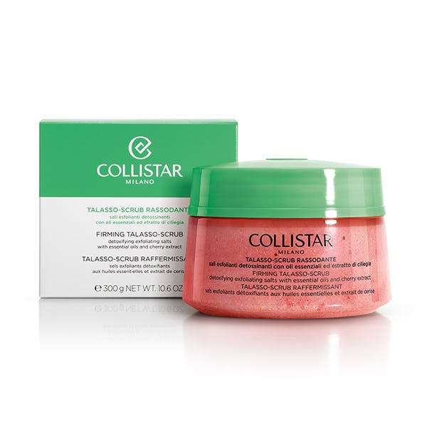 Talasso-Scrub Reafirmante combina los beneficios de la talasoterapia con la eficacia reafirmante de un activo italiano: la cereza de Emilia Romagna, rica en omega 3 y 6 y en vitaminas A y E.